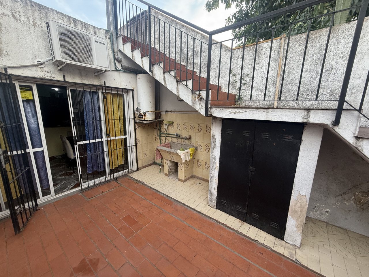 Un ventanal de aluminio desde la cocina nos lleva al patio trasero, que ofrece: