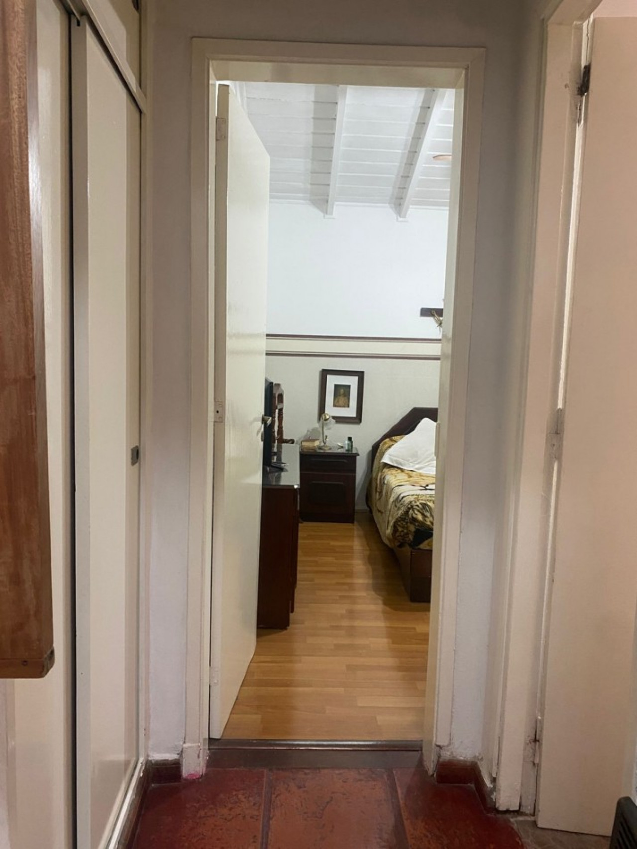 Desde la sala, un pasillo conduce a uno de los baños, al primer dormitorio, a la escalera hacia la planta alta y al comedor, creando una circulación cómoda y funcional. La cocina separada está conectada al comedor, con acceso al lavadero, optimizando la distribución de los espacios de servicio.